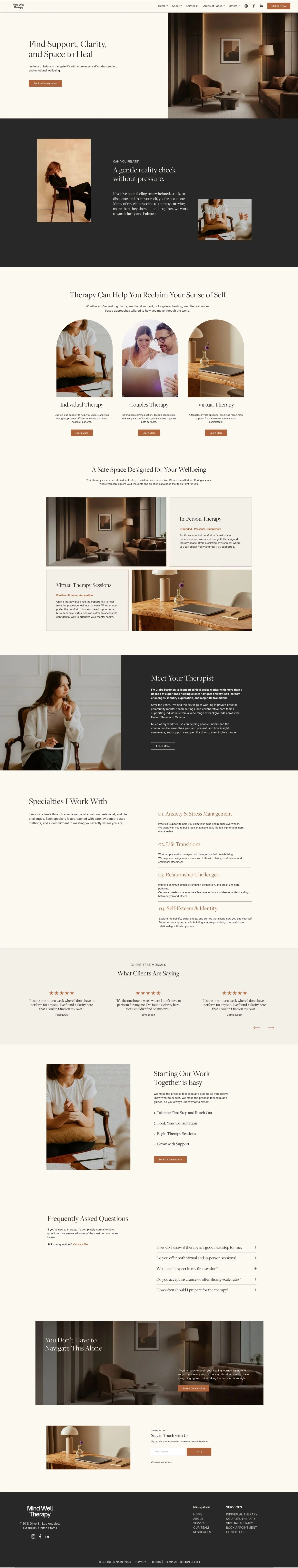 With soft, structured layouts and a focus on clarity, Mindwell helps you communicate your services with confidence while creating a sense of trust and comfort for your visitors.